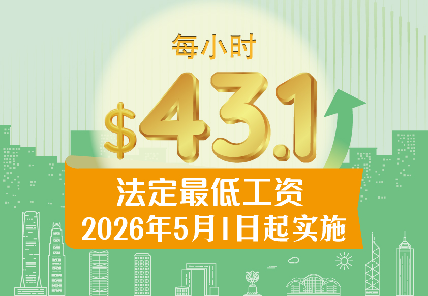 立法会已通过修订法定最低工资水平的附属法例。法定最低工资水平将于2026年5月1日起由现行每小时42.1元调升至43.1元。就雇主须记录雇员总工作时数的每月金额上限,亦提高至每月17,600元以配合新法定最低工资水平的实施。