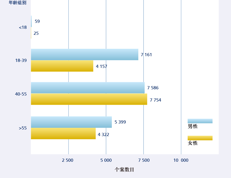 二零一七年根据《雇员补偿条例》呈报并按性别及年龄划分的个案数目