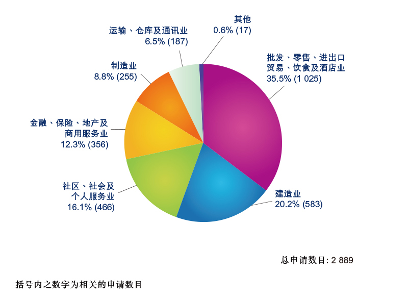 二零二一年按经济行业划分破产欠薪保障基金接获的申请数目