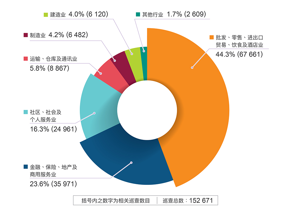 二零二四年按主要经济行业划分劳工督察进行巡查的次数